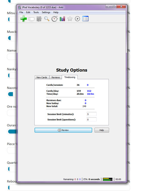 January 10, 2012 at 1:13 pm #24219January 10, 2012 at 9:42 pm #24255Tomorrow I will catch up on setting up my Anki. I had it set up and then I had to reinstall everything on my laptop so I fell behind and I would do it tonight, but it’s late and I’m troubleshooting my Wii…