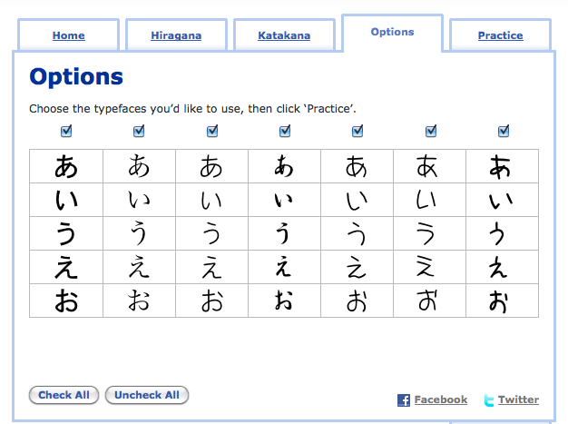 4. After doing this for approximately 5-10 minutes, check all of the boxes on RealKana, and study for another 5-10 minutes, or until you feel comfortable with everything. When you’re ready, move on to the next section. This should be fairly easy because, well, you already know everything (in theory at least… if you don’t, go back and practice what you don’t know).